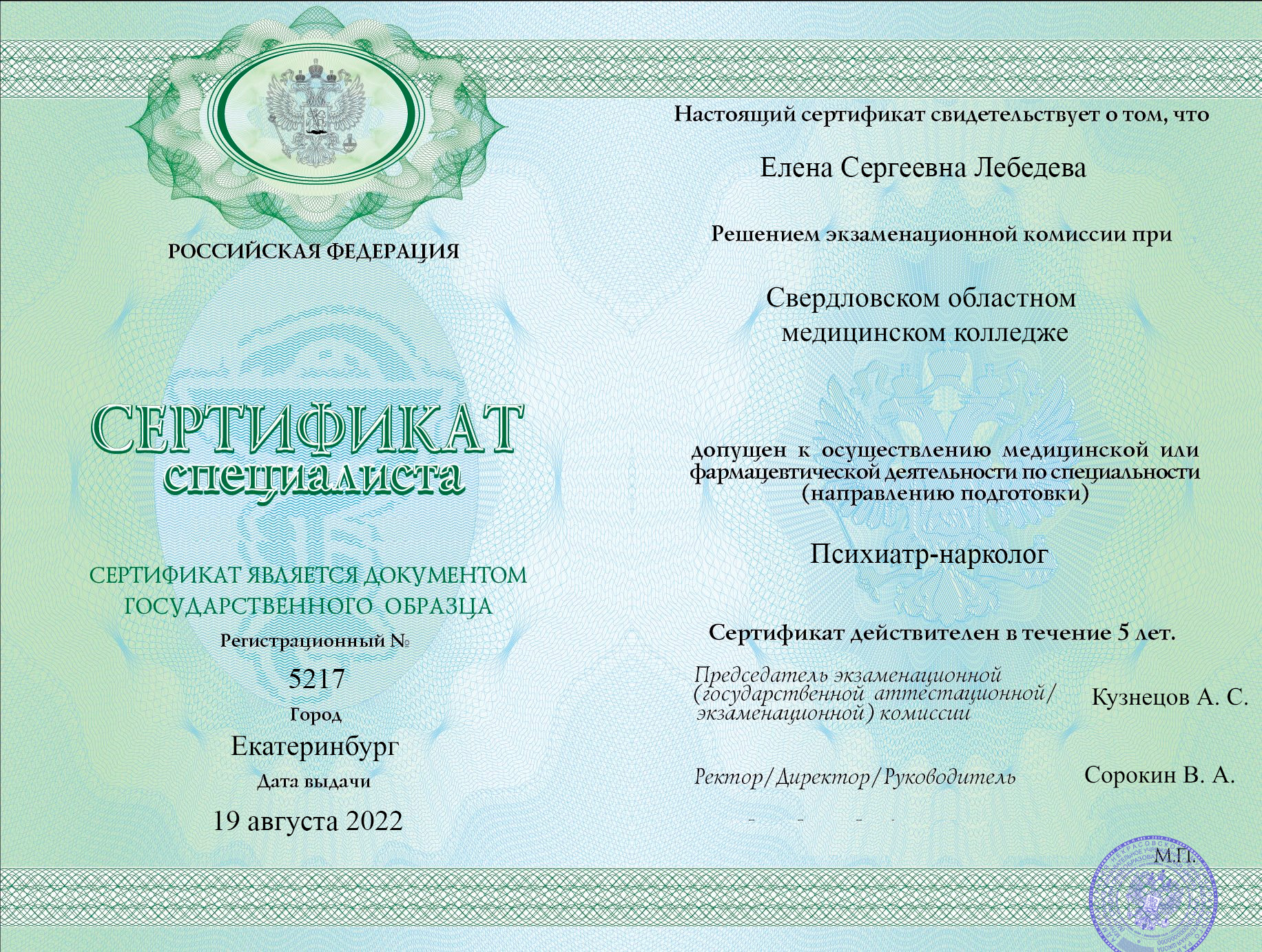 Елена Сергеевна Лебедева врач нарколог клиники доктора Стукаловой в Пионерском